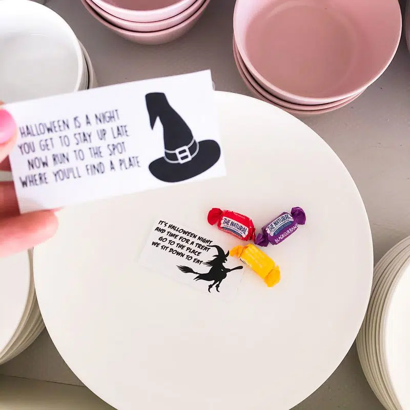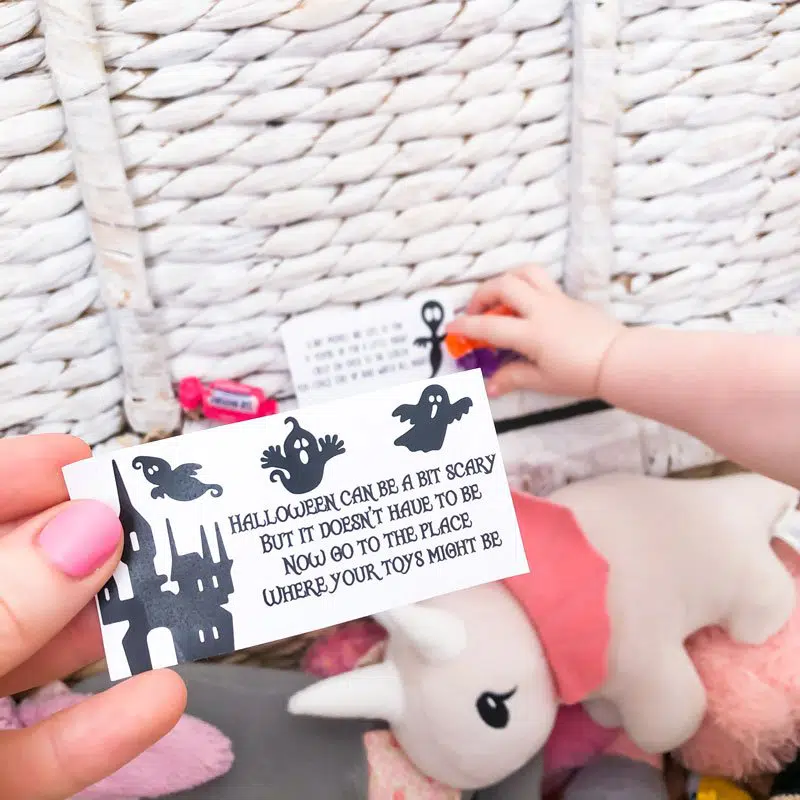 We’ve kept our Halloween scavenger hunt clues fairly vague so that you can vary the difficulty level of your treasure hunt for older and younger children.
