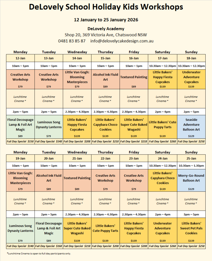 School holidays are the perfect time for kids to slow down, get creative and try something new — and DeLovely Cake Design & Academy in Chatswood has curated a busy program of hands-on holiday workshops designed to spark imagination, build confidence and deliver plenty of “look what I made!” moments.