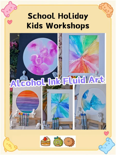 Alcohol Ink Fluid Art: Ever wanted to see paint dance like fairies on paper? In this alcohol ink workshop, there’s no such thing as a “mistake”! With a gentle blow, drip, or tilt, the colours swirl and blend like magic, creating a one-of-a-kind masterpiece. Every child becomes a little scientist, crafting their very own “colour experiment report”.