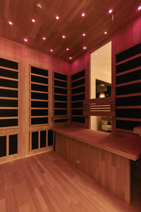 An infrared sauna and steam room deepen the detoxification process, lower stress hormones, and create space for mindful stillness. Between circuits, guests can pause at the Placebo Bar — a no-alcohol refreshment bar serving mineral-rich sips and herbal tonics — to rehydrate, reconnect, and extend the calm.