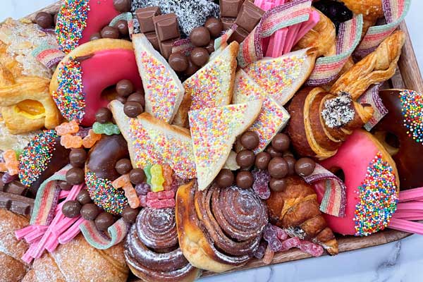 - The Bambini Box: Almond Croissants, Mini Chocolate Croissants, Fruit Danishes, Glazed Donuts with Sprinkles, Lollies, Chocolates, Lamingtons, Fairy Bread.