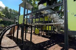 The crowning jewel of the new equipment is a seven-storey high climbing tower with three slides, a climbing ropes course, monkey bars and anything else an energetic kid might need to tire themselves out.
