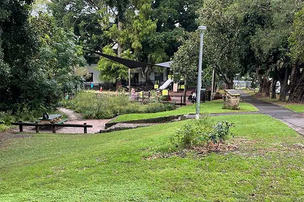 Just outside the gated playground there is a little grassed area with good shade and picnic tables. In the school holidays, you’ll find local kids riding their bikes here and parents catching up over a coffee from one of the local cafes.