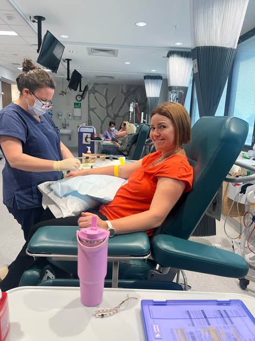 Before my first chemotherapy infusion, I walked into the chemo room with my heart pounding… I remember sitting in the chair and the nurse going through the side effects again. More tears!