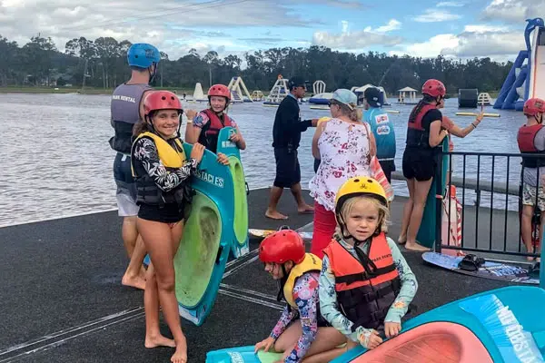 Gold Coast Aqua Park is an inflatable playground… on the water! Located at Broadwater Parklands in Southport (just a 5 minute drive from Surfer’s Paradise), the Gold Coast Aqua Park is a huge amount of fun. There are slides, swings, monkey bars, trampolines, as well as lots of obstacles to climb over and around. All guests wear a life jacket and have a safety briefing before the session starts. Children from as young as 5 years old can go on the Gold Coast Aqua Park (but 5-9 year olds need to be accompanied by an adult).